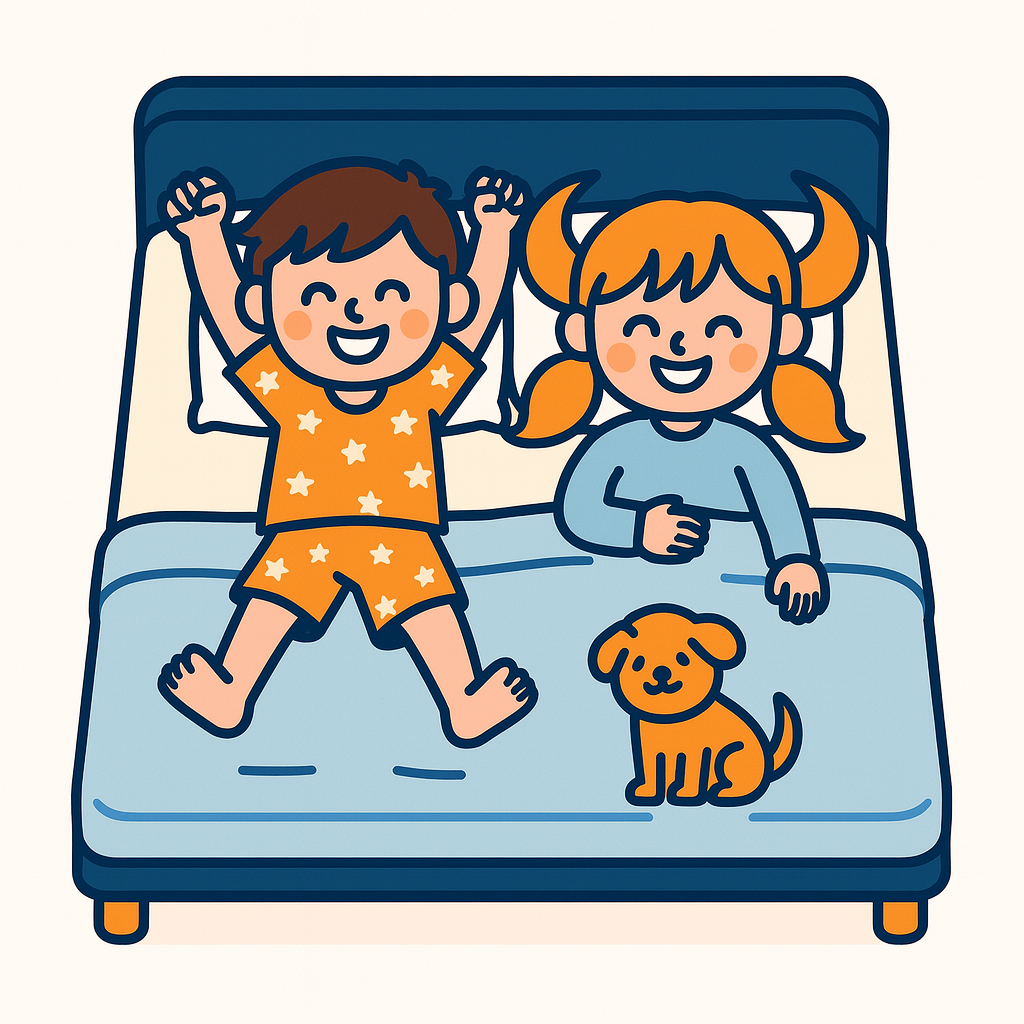 Saltare sopra il materasso fa parte dell’infanzia (anche quando mamma dice “Piano!”).